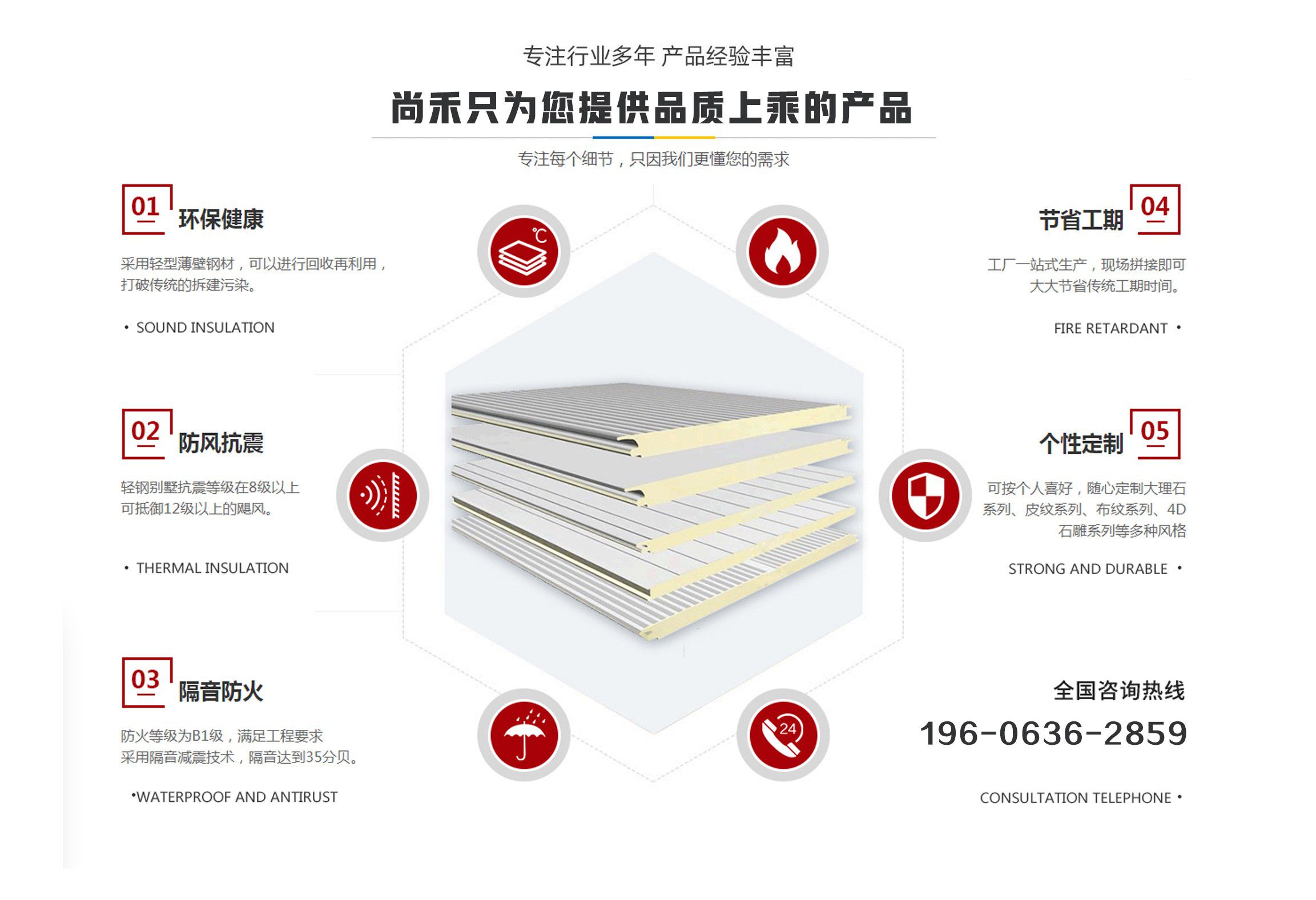山東尚禾經(jīng)貿(mào)有限公司是集板材設(shè)計(jì)、研發(fā)、生產(chǎn)、施工、一體化的科技公司,并在同行業(yè)中率先通過(guò)了質(zhì)量、環(huán)境、安全管理體系認(rèn)證。公司2011年投入資金2000余萬(wàn)元引進(jìn)世界先進(jìn)的聚氨酯節(jié)能板連續(xù)生產(chǎn)線(xiàn)、意大利進(jìn)口發(fā)泡系統(tǒng),采用六組份在線(xiàn)自動(dòng)操作混合澆注技術(shù),在線(xiàn)一次性完成社會(huì)配料中心或工廠的配比混合工藝,并可以根據(jù)溫度在線(xiàn)自動(dòng)調(diào)整,從而生產(chǎn)處與眾不同的高強(qiáng)度、節(jié)能型、綠色環(huán)保的聚氨酯夾芯板。(其使用年限高于同行業(yè)其他品牌5-10年) 公司主要經(jīng)營(yíng)范圍包括聚氨酯夾芯板,PU夾芯板,冷庫(kù)板,潔凈板,聚氨酯冷庫(kù)板,冷庫(kù)保溫板的設(shè)計(jì)、生產(chǎn)、銷(xiāo)售、技術(shù)指導(dǎo)、安裝及一體、以及進(jìn)出口業(yè)務(wù),是中部六省最大的綠色節(jié)能建材生產(chǎn)基地。聚氨酯夾芯板年產(chǎn)200萬(wàn)平方米、PU夾芯板、冷庫(kù)保溫板500萬(wàn)平方米、鏈整產(chǎn)業(yè)綜合實(shí)力,開(kāi)創(chuàng)了六省至中西部創(chuàng)新型中小名企總部基地,并將著力推進(jìn)中國(guó)中西部地區(qū)集成房屋住宅產(chǎn)業(yè)化發(fā)展進(jìn)程。 科技創(chuàng)新、節(jié)能典范。千萬(wàn)間始終秉承“誠(chéng)信、合作”的企業(yè)文化精髓,長(zhǎng)期致力于鋼板材結(jié)構(gòu)節(jié)能建筑產(chǎn)業(yè),愿與社會(huì)各界攜手合作,共鑄綠色、環(huán)保美好未來(lái)。 產(chǎn)品具有良好的絕熱、阻燃、隔音、環(huán)保、耐久性能,可廣泛應(yīng)用于工業(yè)、商用建筑內(nèi)外墻、以及民用建筑外墻保溫、空調(diào)通風(fēng)系統(tǒng)、專(zhuān)用防火保溫門(mén)等領(lǐng)域。 我們始終秉承...